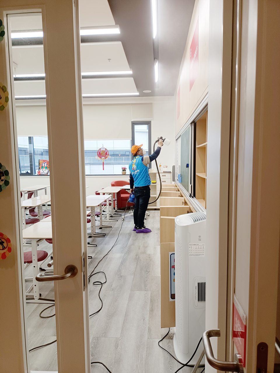 教室儲(chǔ)物柜墻面全方位噴涂施工
