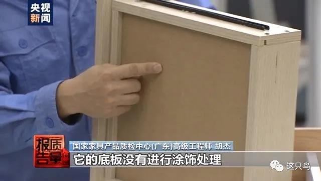 國家家具產(chǎn)品質(zhì)量監(jiān)督檢驗中心(廣東)高級工程師 胡杰:這個抽屜的側(cè)板和底板沒有進行封邊的處理,這個樣品是不符合標準要求的。我們再來看一下最后一個,這些地方都進行了封邊的處理,但是在一些隱蔽的地方,它的底板沒有進行涂飾處理,這個也是不符合標準要求的。
